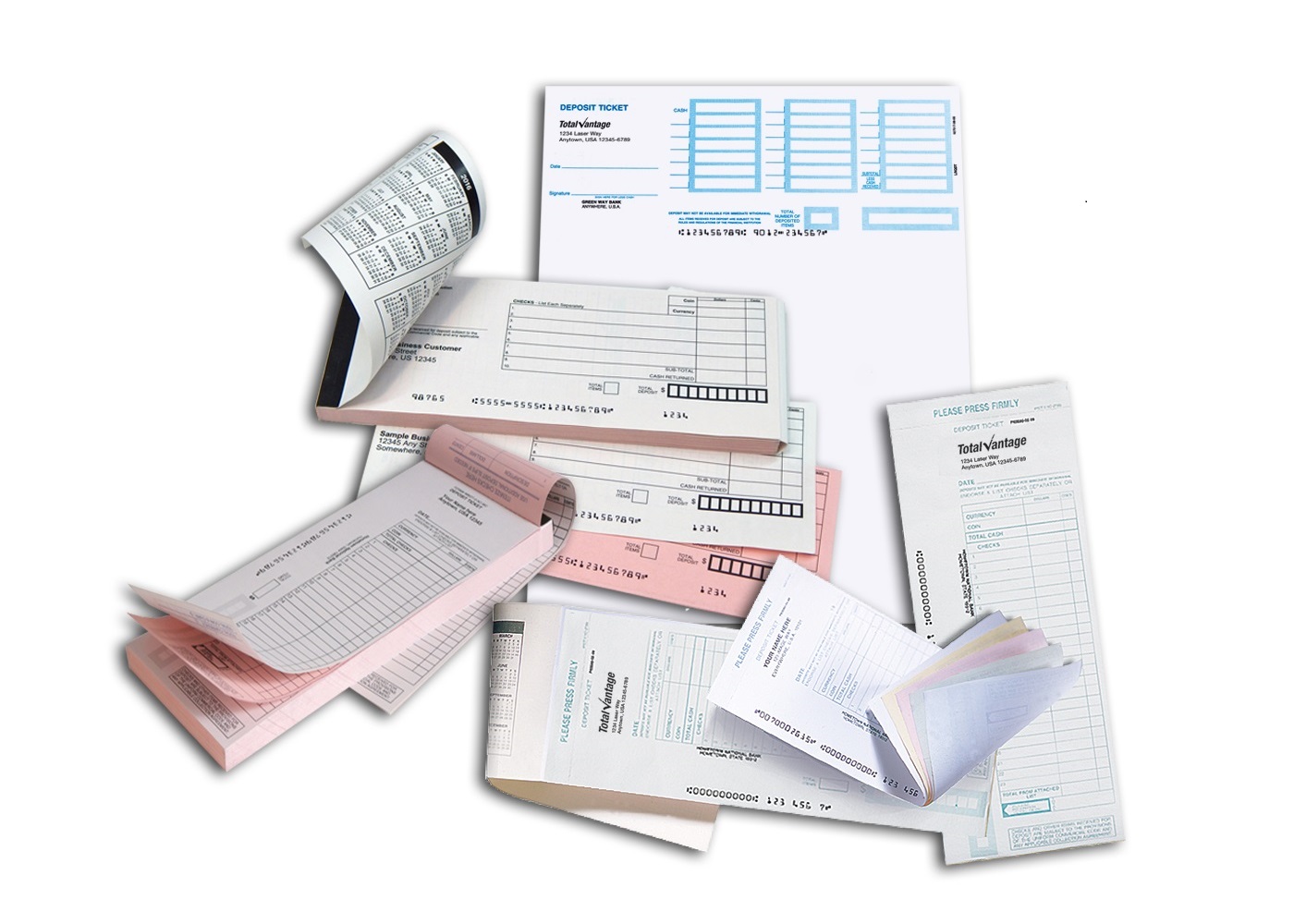 Image Character Recognition (ICR) Deposit Tickets are produced in a high quality ink for bank scanning and meet ANSI Image Ready standards.