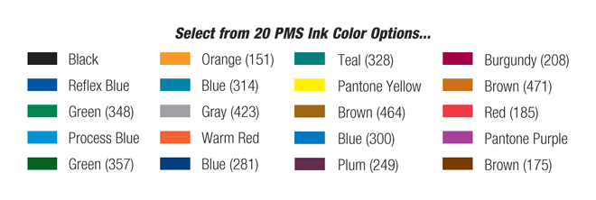 create a unique look. Select from the 20 PMS ink colors.